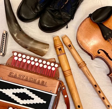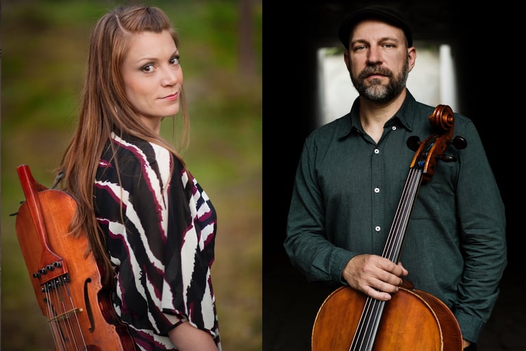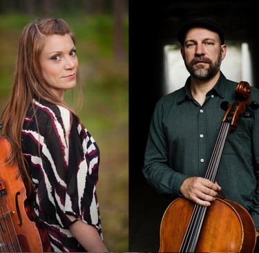 Emilia Amper & Anders Löfberg bjuder på egna kompositioner och traditionella låtar – från stilla valltoner till rytmiska dansmelodier – med djup närvaro och spelglädje.