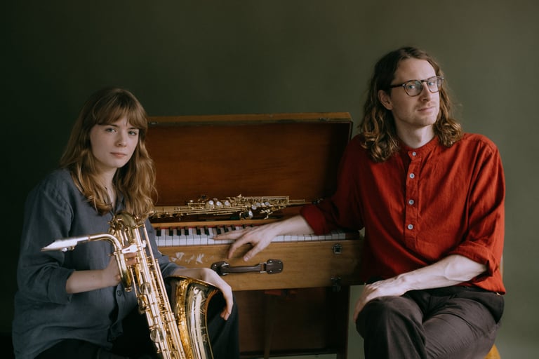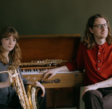 På saxofoner, tramporgel och piano och med rötterna i svensk folkmusiktradition rör sig Stina Huldén och Olov “Klyv-Olle” Lindroth i ett tätt och lekfullt samspel mellan dåtid och nutid.
